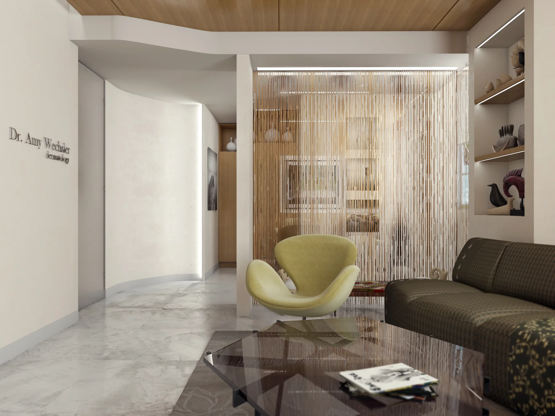 The project is to relocate and expand the existing Dermatology of a known Dermatologist by 3 times. The plan is separated into three group each with individual nurse station and exam rooms. The project dealt with asbestos abatement, coordination with lighting, mechanical consultant. The finish is to have a residential scale and comfort to allow for a restful and calm experience. The office is complete in March 2017.