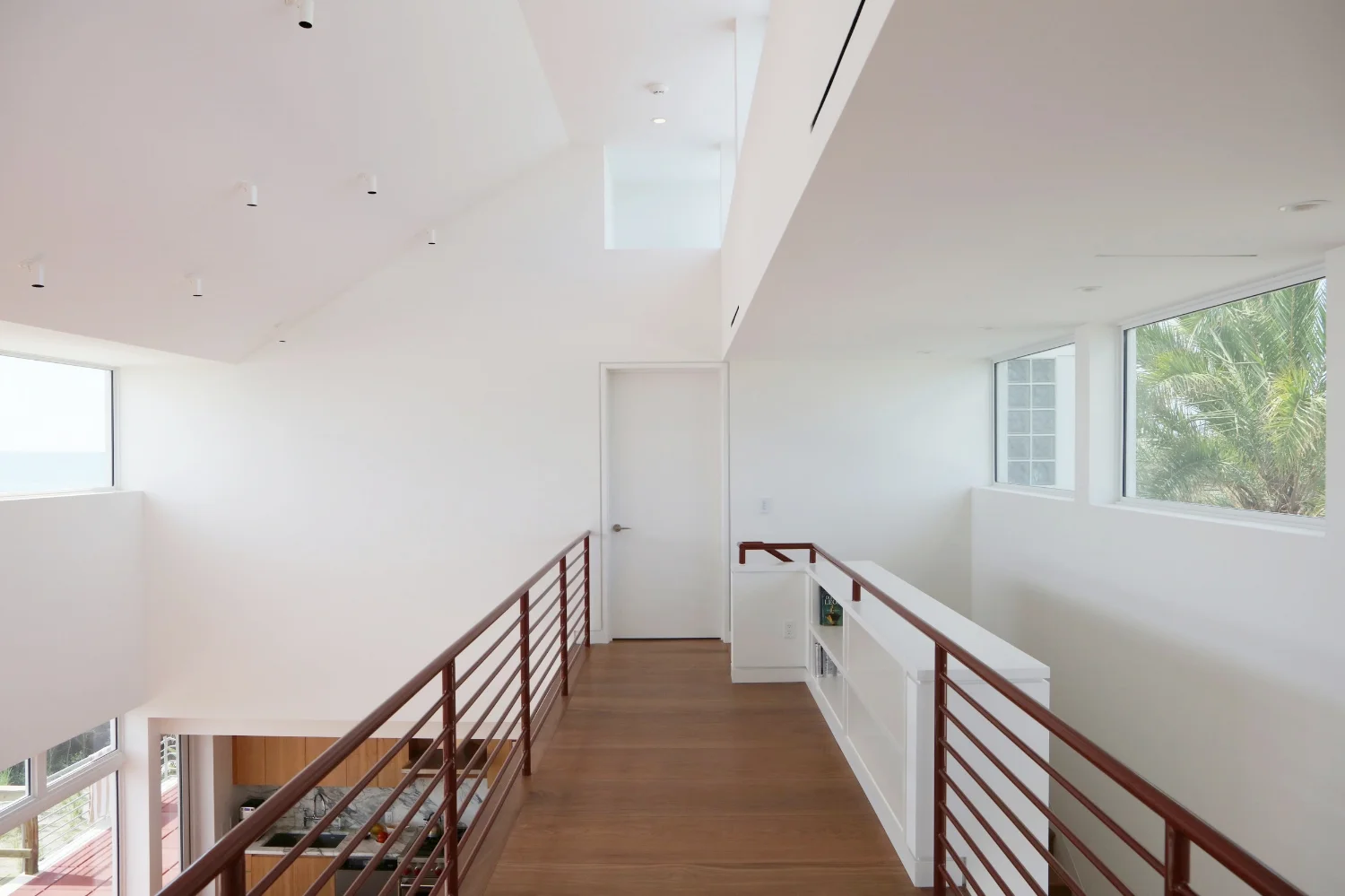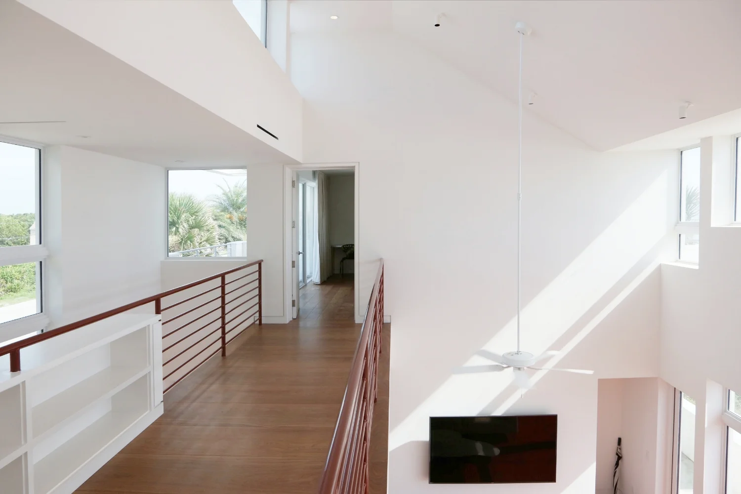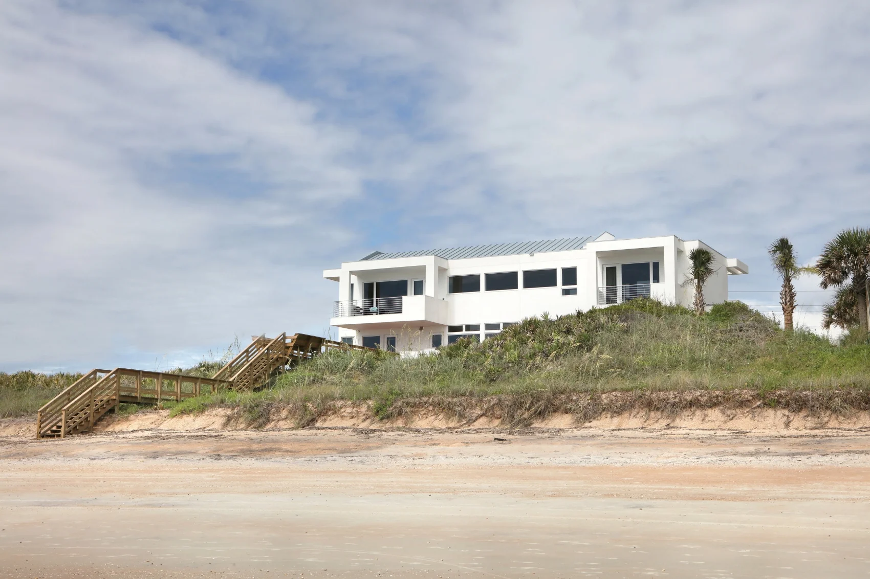 The house is located right on the beautiful sandy Florida beach. Design consideration includes hurricane resistance envelope, light specs for protection for sea turtle habitat restriction. Concrete structure, with alternate wood vaulted ceiling structure for weight consideration.